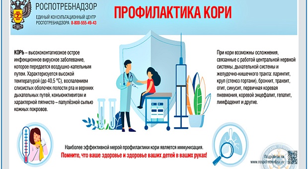 В соответствии с Национальным календарем профилактических прививок РФ двукратная иммунизация против кори проводится детям в возрасте 12 месяцев и 6 лет. Кроме того, в рамках Национального календаря профилактических прививок прививаются против кори все взрослые до 35 лет, не болевшие корью, ранее не привитые, привитые однократно; а также взрослые от 36 до 55 лет, относящиеся к группам риска (работники медицинских организаций и организаций, осуществляющих образовательную деятельность, организаций торговли, транспорта, коммунальной и социальной сферы; лица, работающие вахтовым методом, и сотрудники государственных контрольных органов в пунктах пропуска через государственную границу Российской Федерации).