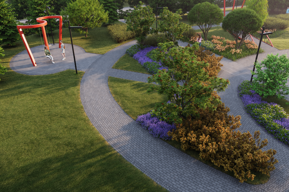 Проект благоустройства предусматривает обновление пешеходных дорожек, обустройство системы освещения, замену лавочек и урн, установку малых архитектурных форм, а также высадку деревьев, кустарников и цветов.