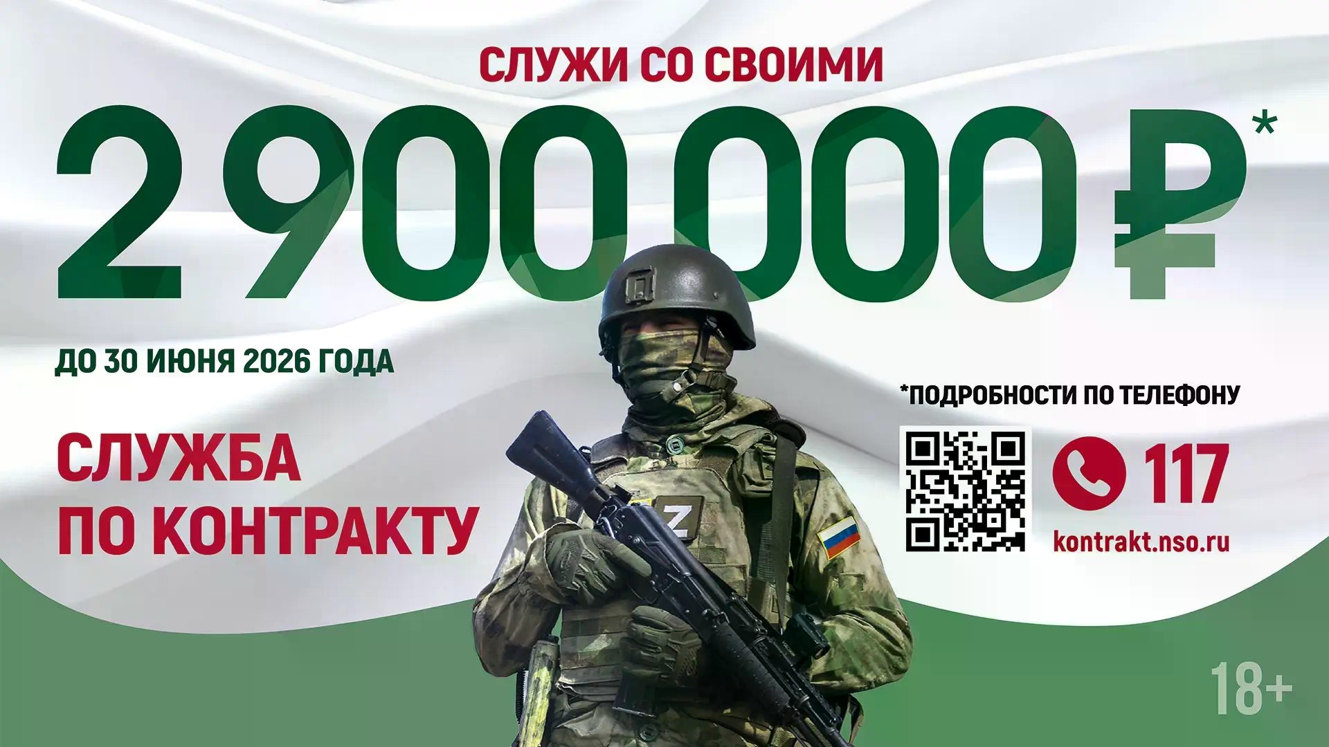 При заключении контракта до 30 июня 2026 года в Новосибирской области выплата сразу при поступлении на службу — до 2,9 млн рублей, а денежное ежемесячное содержание — от 224 000 рублей. Для мужчин от 18 до 46 лет годных по состоянию здоровья — служба в новых войсках БПЛА. Сразу при заключении контракта выплата также составит до 2,9 млн рублей.