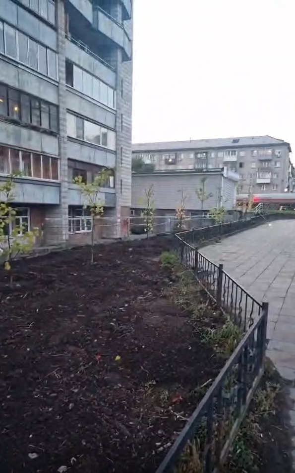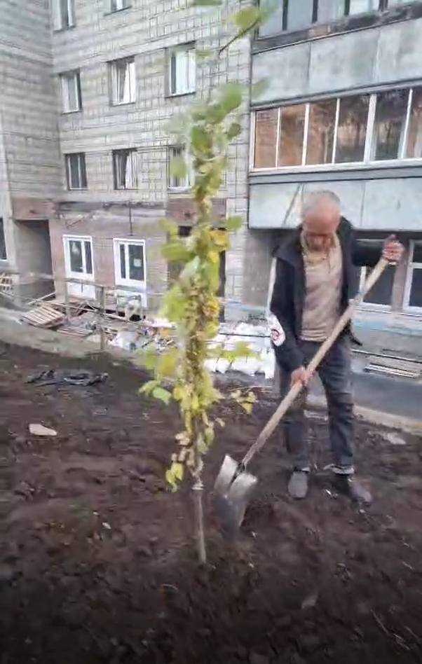 При помощи трудового участия жителей и членов инициативной группы произведен посев травы и высадка деревьев.