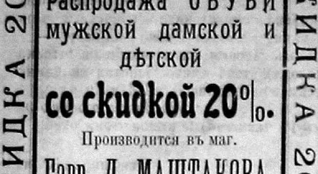 Посетители увидят рекламные полосы ведущих ново-николаевских изданий — «Народная летопись», «Обская жизнь», «Обской вестник». Рекламные тексты того времени удивляют своеобразием. «Отделение Русско-китайского банка по поручению клиентов продает молотилки». А в «каменный магазин Федора Даниловича Маштакова получены икра паюсная, варшавские кровати, прессованный хмель, духи, мыло и одеколон». Уже в те времена рекламодатели пытались привлекать покупателей распродажами. Например, магазин мужской одежды Маштакова зовет на «распродажу обуви мужской, детской и дамской со скидкой в 20%». Для привлечения внимания это объявление опубликовано в газете перевёрнутым. Само слово «распродажа» тогда использовалось довольно редко, чаще в ново-николаевских рекламных объявлениях это называли «небывалой дешёвкой».