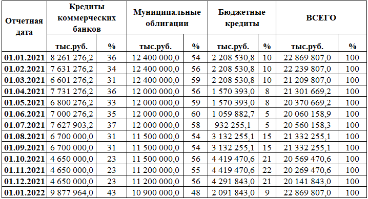 Внутренний муниципальный долг в 2021 году
