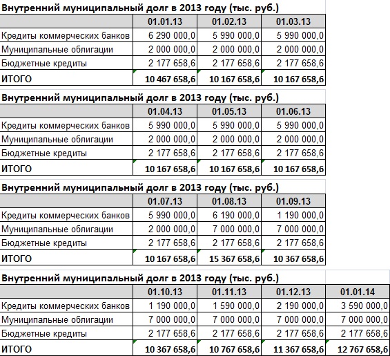Внутренний муниципальный долг в 2013 году