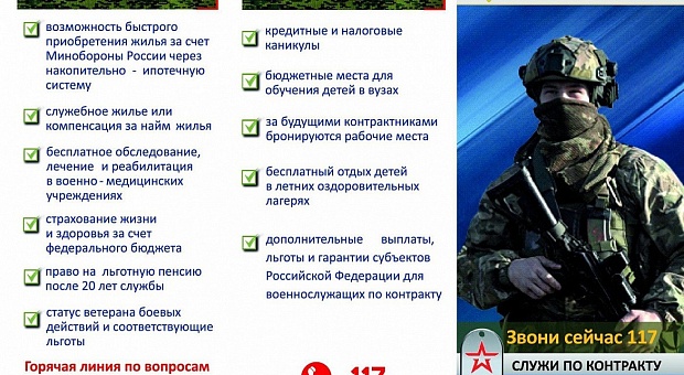 Подробности о заключении контракта с Минобороны РФ можно узнать по единому номеру телефона 117