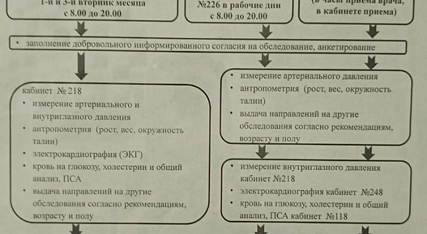 Схему маршрута при прохождении диспансеризации и профилактического медицинского осмотра в ГБУЗ НСО "ГКБ№19" по адресу : ул. Героев Революции,5 смотрите на фото! Пройти медицинский осмотр возможно за один рабочий день!